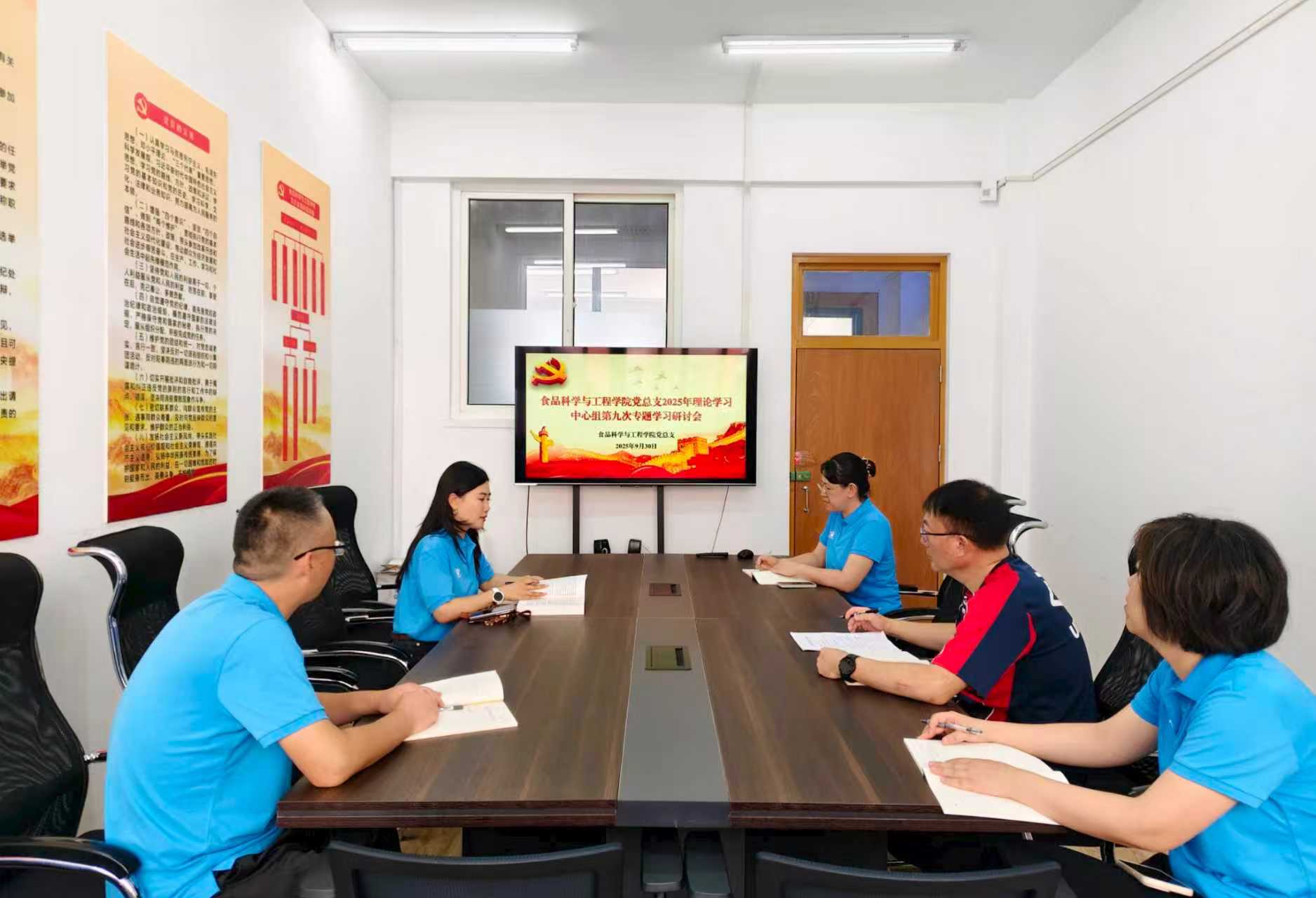 9月30日上午,食品科学与工程公司党总支在党员活动室召开了2025年第九次理论学习中心组专题学习会议,理论学习中心组成员参加学习,会议由公司党总支书记张潇月主持。