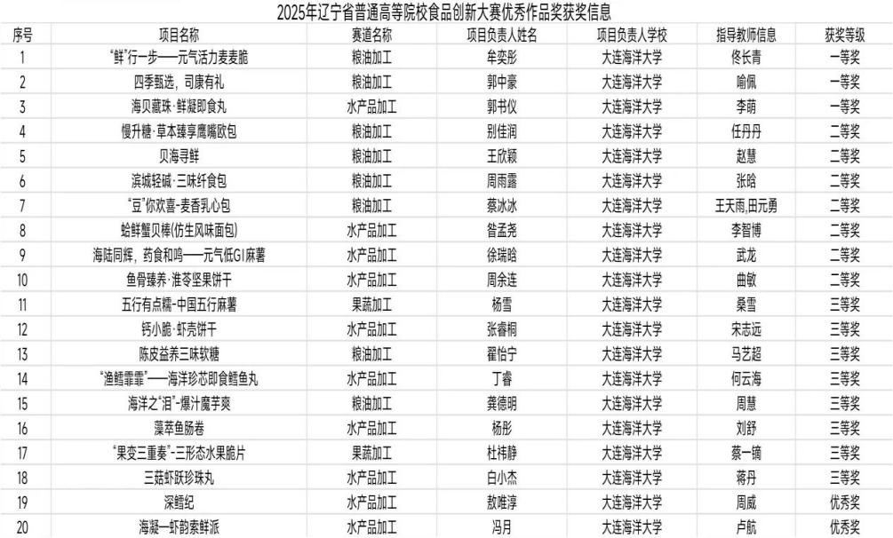 近日,由辽宁省教育厅主办,沈阳农业大学承办的2025年辽宁省普通高校食品创新大赛成功举办。公司共申报作品51项,入围25项,经过评选,获省一等奖3项,二等奖7项,三等奖8项。